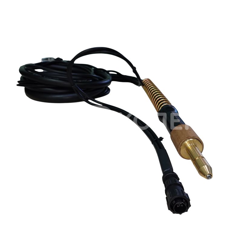 Горелка для сварки самозащитной порошковой проволокой Innershield K345-10 с разъемом для подключения к механизмам подачи сварочной проволоки производства Miller Electric (США).